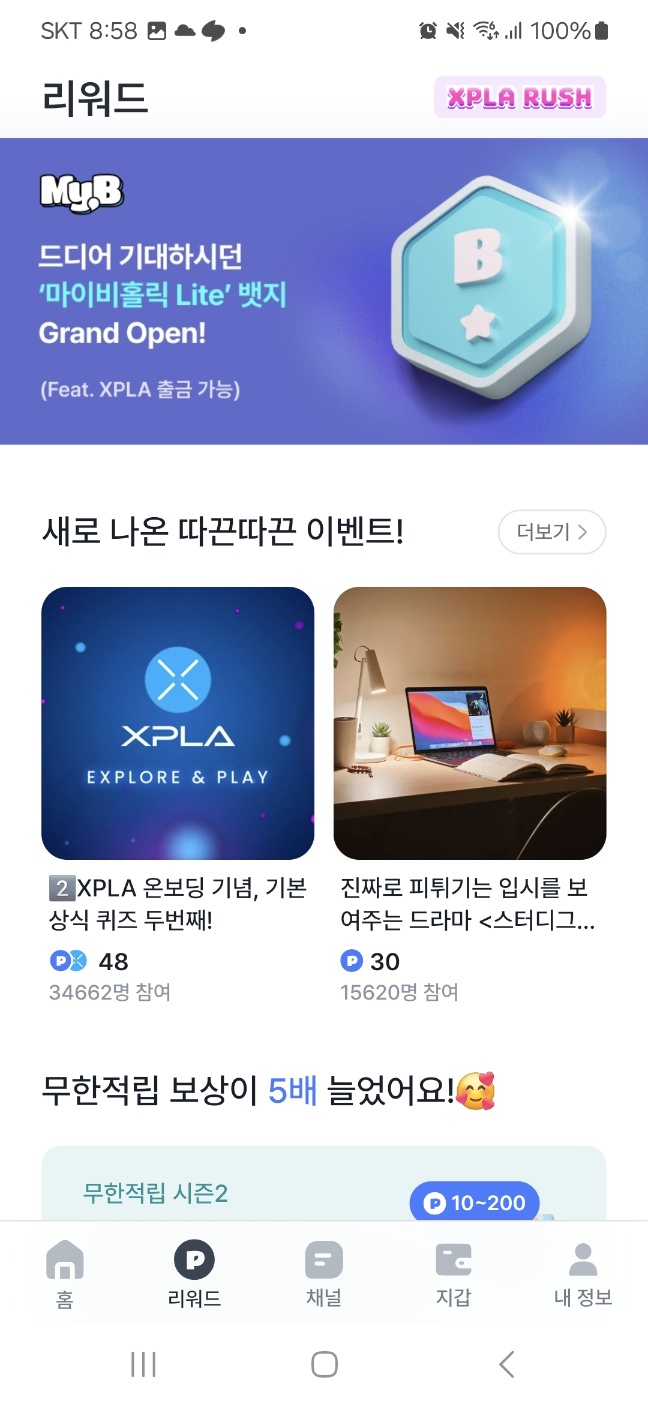 실제 돈을 사용하지 않고도 마이비에 있는 퀴즈나 이벤트 등을 참여하여 얻은 포인트로도 금 구매 가능해요!